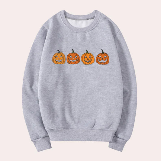 Afra – halloween-pullover mit rundhalsausschnitt und kürbismotiv für damen