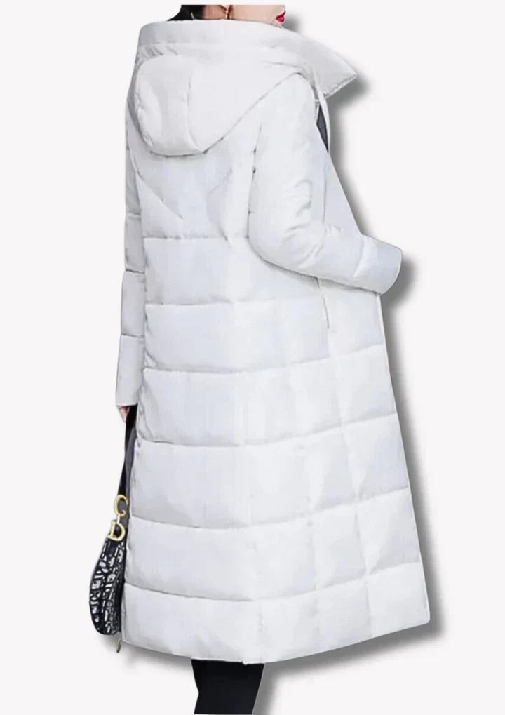 Airrina ist ein langer Mantel für Damen, der sowohl auf Eleganz als auch auf Wärme ausgelegt ist. Mit einer stilvollen Passform und einem zeitlosen Design ist diese Jacke perfekt für kalte Tage. Eine vielseitige Wahl, die jedem Outfit einen raffinierten Look verleiht.