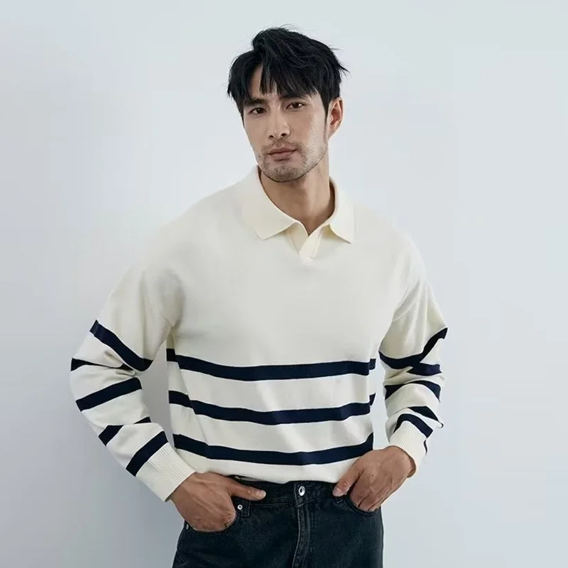 Ezekiel – gestreifter strickpullover mit kragen für herren